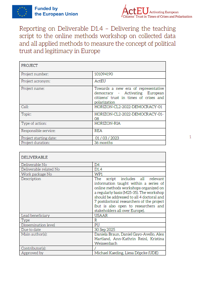 Deliverable 1.4: Delivering the teaching script to the online methods workshop on collected data and all applied methods to measure the concept of political trust and legitimacy in Europe