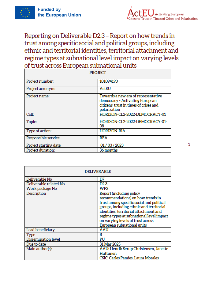 Deliverable 2.3: Report on how trends in trust among specific social and political groups, including ethnic and territorial identities, territorial attachment and regime types at subnational level impact on varying levels of trust across European subnational units