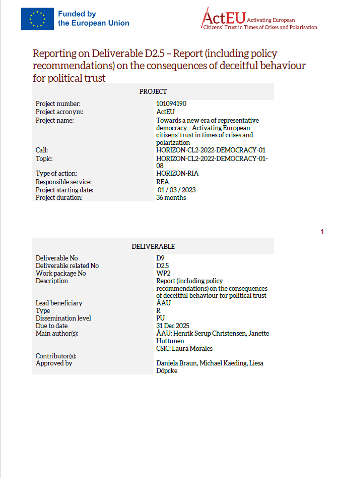 Deliverable D2.5: Report (including policy recommendations) on the consequences of deceitful behaviour for political trust